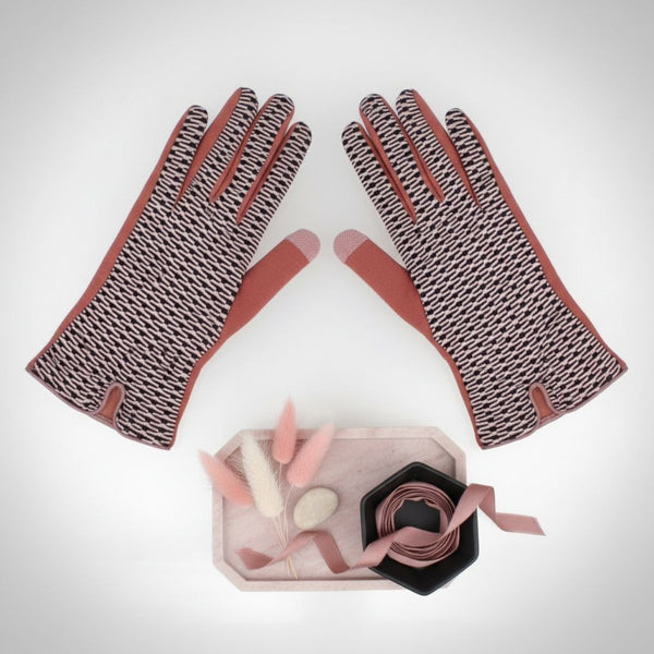 Pink Mauve Cross Wavy Touchscreen Winter Gloves
