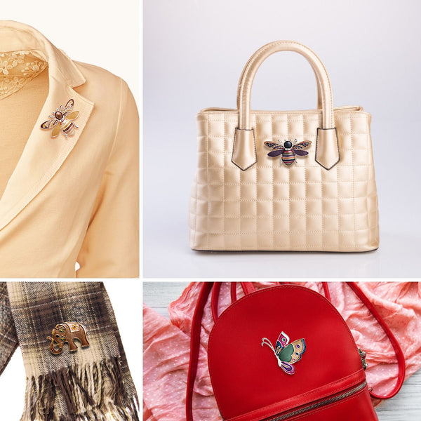 Gold Metal Elephant Magnetic Brooch Pin Featuring White Ears and Rhinestone Detailing. Can also be used as handbag decoration without damaging the fabric. **Handbag not Included