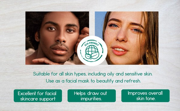 SUITABLE: all skin types, including oily and sensitive skin. Use as a facial mask to beautify and refresh. Excellent for facial skincare support and deep pore cleansing. It effectively reduces the appearance of blackheads, whiteheads, and impurities.
