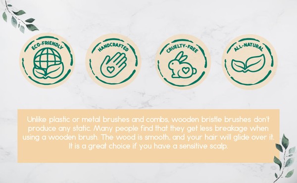 Unlike plastic or metal brushes and combs, wooden bristle brushes don't produce static. Many people find that they get less breakage when using a wooden brush. The wood is smooth, and your hair will glide over it. It is an excellent choice if you have a sensitive scalp.