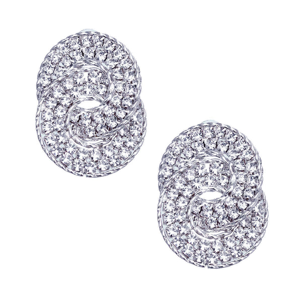 Silver Metal and Clear Crystal Rhinestone Double Hooked Ring Stud Earrings. Earrings measure 1.25 inches wide.