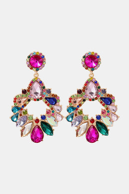 Zinc Alloy Frame Glass Stone Dangle Earrings