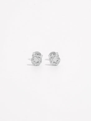 925 Sterling Silver Lab-Grown Ruby Flower Shape Stud Earrings