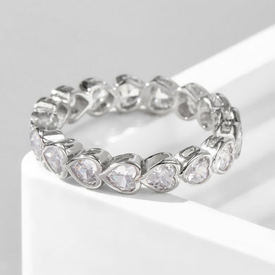 925 Sterling Silver Inlaid Zircon Heart Open Ring