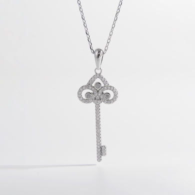 925 Sterling Silver Inlaid Zircon Key Shape Necklace