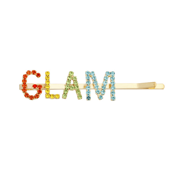 Gold Metal and Multi Color Rhinestone GLAM Bobby Pin. Letters Measure .55" tall.