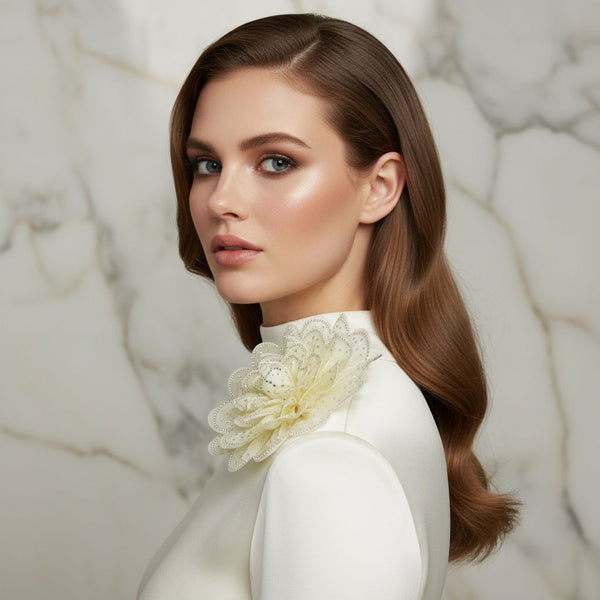 Yellow Camellia Flower Sparkle Brooch Hair Clip