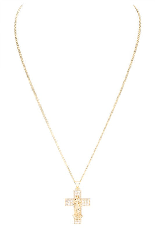 • Load image into Gallery viewer, CZ St Mary Cross Pendant Necklace