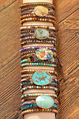 Bracelet Bar-Wood & Blue Turquoise Beads