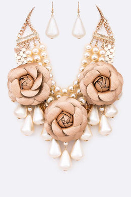 Black Flower Mix Pearls Statement Necklace Set