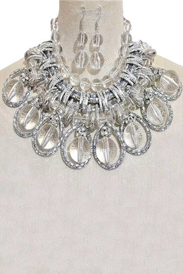 Clear Beads Mix Chain Statement Necklace Set