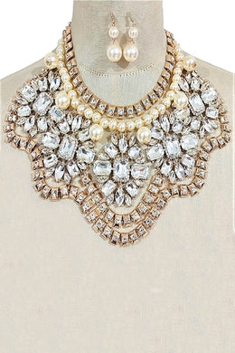 Crystal Bib Head Turner Statement Necklace Set