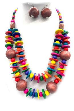 Mix Wooden Beads Statement Necklace Set