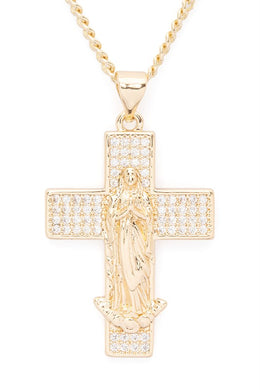 CZ St Mary Cross Pendant Necklace