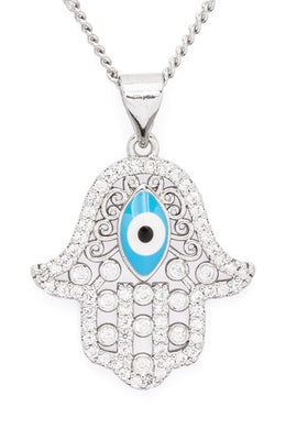 Cubic Zirconia Hamsa Pendant Necklace