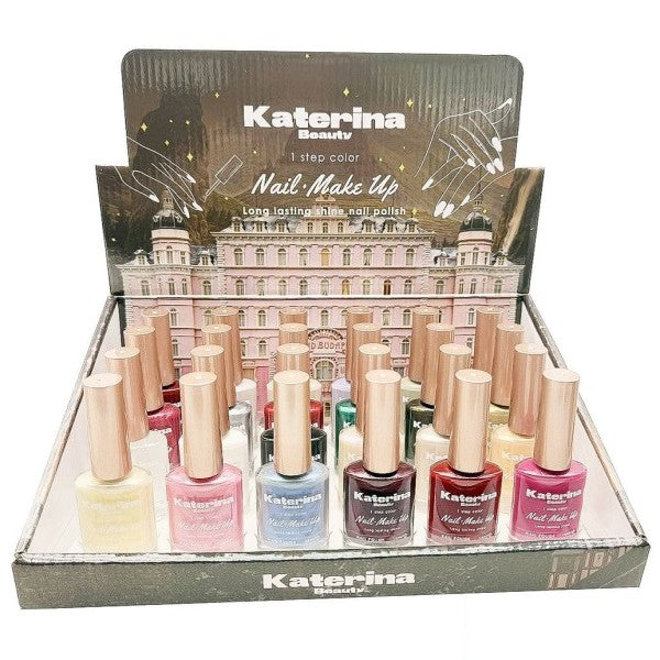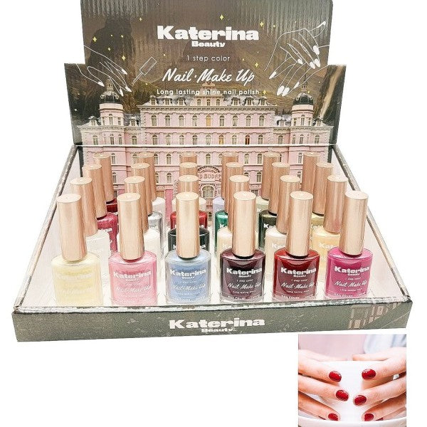- A vibrant collection of 24 Katerina One Step Pastel Color Makeup Nail Polishes perfect for creating a professional manicure