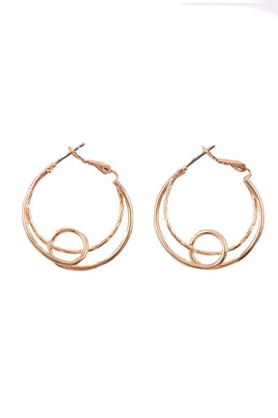- Double layer hoop earrings- Textured hoops- Solid loop hoop- "Ring detail"- Sturdy - Clasp - Minimalist - Gold tone - Wardrobe staple - 1 1/4" in drop