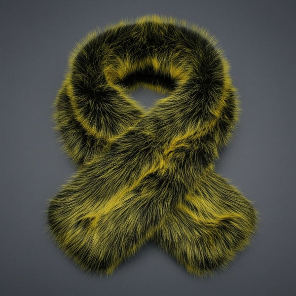 Women's Winter Scarf. Instant Glamor Luxe Faux Fur Bold Multi-tone Yellow and Black Collar Winter Stole Scarf. Plush, Ultra-Soft, and Effortlessly Chic. Perfect Statement Accessory for Cold Weather Winter Styling. 100% Polyester.