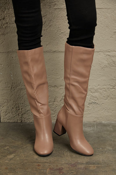 The luxurious faux leather provides a sophisticated edge, while the knee-high design elongates your silhouette. With a sturdy block heel, these boots ensure stability and elegance, making them a versatile addition to your wardrobe. Whether you're dressing up for a night out or adding flair to your daily ensemble, these knee-high boots are the perfect choice for a chic and confident look.
