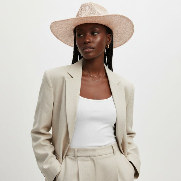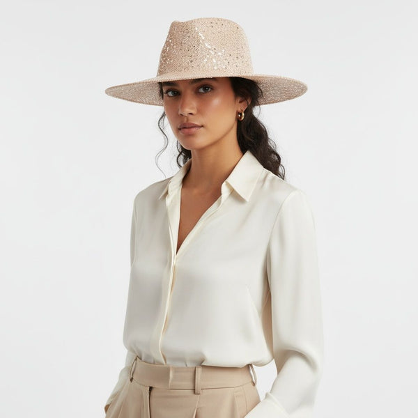 Cowboy Hat Pale Pink Sequin Embroidery Panama Hat