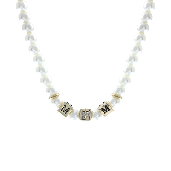 Collar de perlas crema de 8 mm con cuentas cuadradas doradas con detalle MOM.