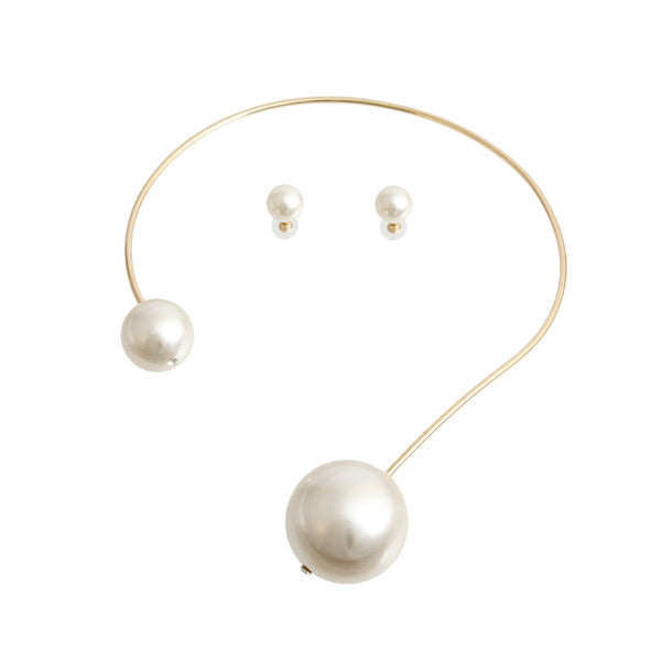 Gold Rigid Wrap Pearl Choker Necklace Set