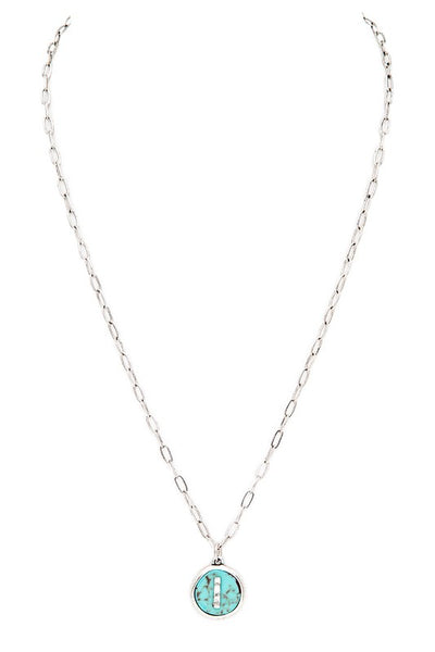 Initial I Turquoise Pendant Necklace