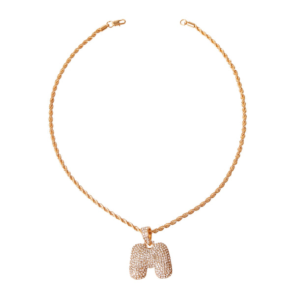 Collar de cadena trenzada de metal dorado con colgante de diamantes de imitación con letra M. El colgante mide 1,75 pulgadas de largo.