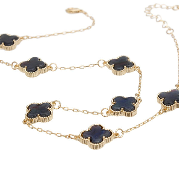 Necklace Gold Gray Quatrefoil Clover 7 Motifs