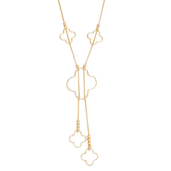 Negligee Long Gold Box Chain Quatrefoil Necklace