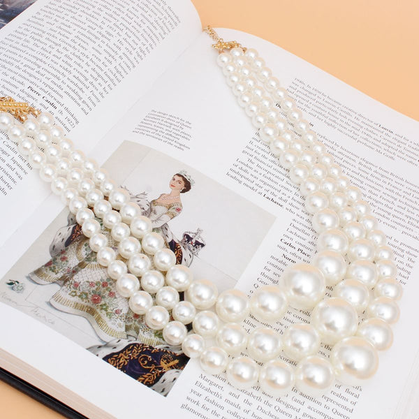 Pearl Necklace Cream Bubble Gum 3 Layer for Women