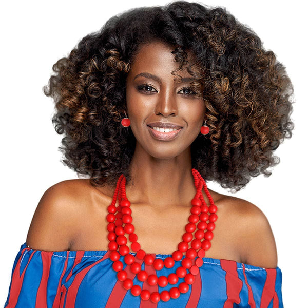 Juego de collar en capas de cuentas de madera rojas redondas de 3 hebras graduadas con cuentas redondas pequeñas y grandes. Cuentas Plus Redondas De Disco Plano.