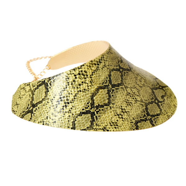 Juego de gargantilla de metal con textura dorada con estampado de serpiente verde oliva. 4,5 pulgadas de ancho
