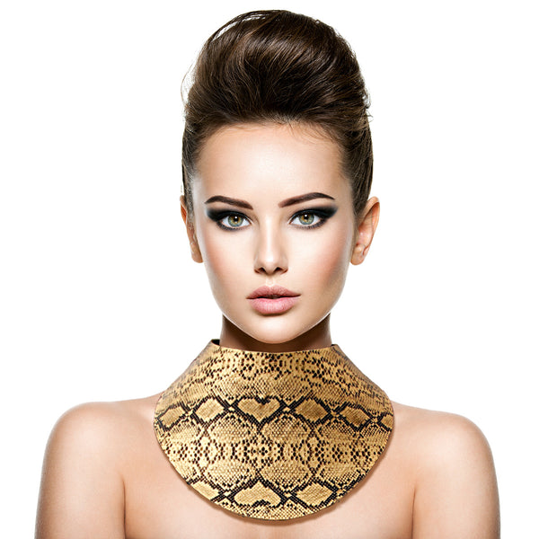 Juego de gargantilla de metal con textura dorada con estampado de serpiente dorada. 4,5 pulgadas de ancho