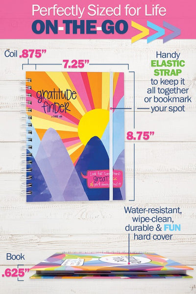 The Faith-Based Inspirational Gratitude Finder is a 52-week (non-dated) gratitude journal with brilliantly colorful layouts so you can start/restart whenever you want.