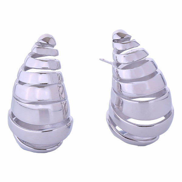 14K White Gold Dipped Hypoallergenic Brass Hollow Spiral Cone Shaped Stud Earrings. Post Backing. 3.3 cm/1.3 inches.