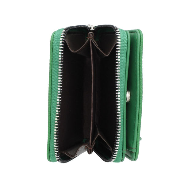 Alpha Kappa Alpha Sorority Paraphernalia Women's Keychain Zipper Wallet. Green Soft Vegan Faux Leather Snap and Zipper Wallet Featuring Pink AKA Greek Letter Paint Stamp Detail. Wallet Specs: Magnetic Snap Closure Front Compartment with ID Window Slot, Credit Card Slots, and Cash Pocket. Silver Metal Zipper Closure Compartment with Divided Interior. Zipper Features Silver Metal Keyring with Faux Leather Tassel Measuring 4.25" Long Plus Pink and Green 1908 Ivy Leaf Charm Measuring 1.5".