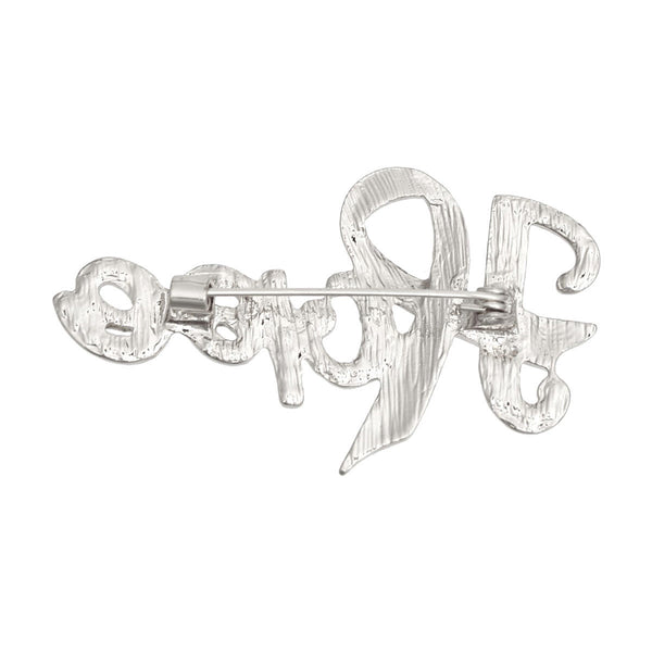 Women's Breast Cancer Pink Ribbon Brooch. Silver Metal with Light Pink Epoxy Ribbon and Clear Rhinestones Hope Breast Cancer Ribbon Pin. Safety Pin Hook Closure.