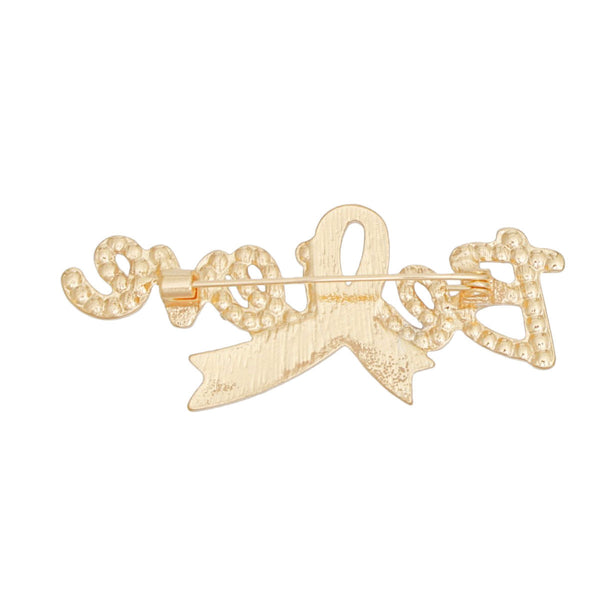 Brooch Gold Light Pink Ribbon Believe Pin Women