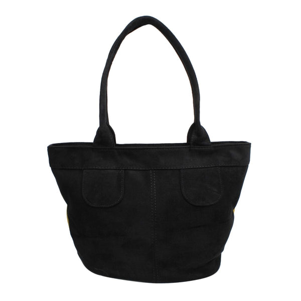 Tote Bag Yellow Suede Black Trim Shoulder Purse