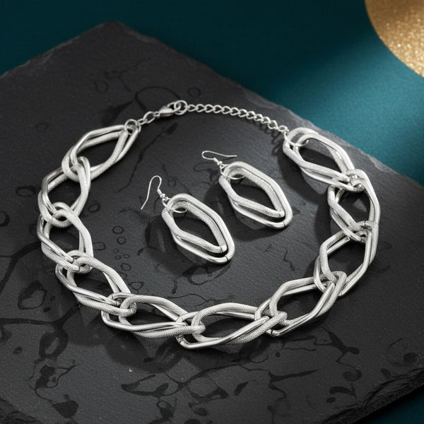 Chain Silver Diamond Cut Geometric Chunky Necklace