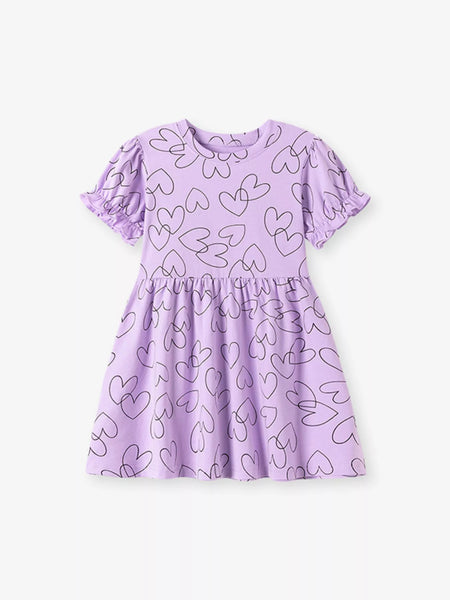 Children's Heart Print Ruffle Sleeve Casual Dress