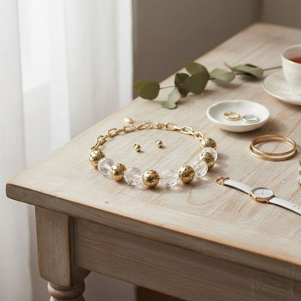 Chunky Faceted Clear and Metal Ball Bead Necklace