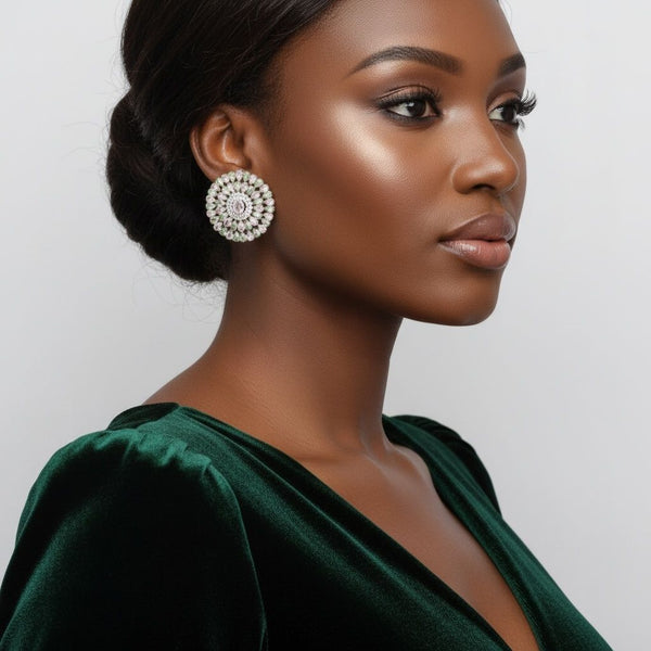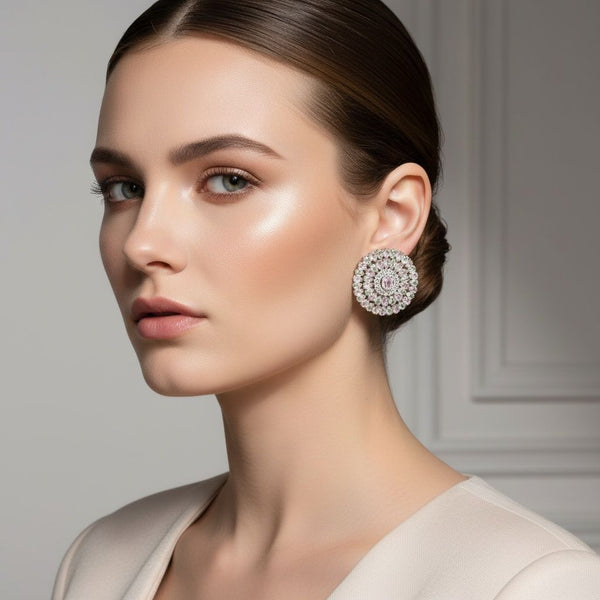 Women's Clip On Earrings. Light Catching Brilliance Radiant Round Clip On Earrings Featuring Two Rows of Alternating Light Pink and Light Green Glass Teardrop Crystals Surrounding a Clear Rhinestone and Pink Oval Crystal Center Set in Silver Metal. Date-Night Sparkle and Shine. Paddle Back Closure. Perfect for AKA Sorors!