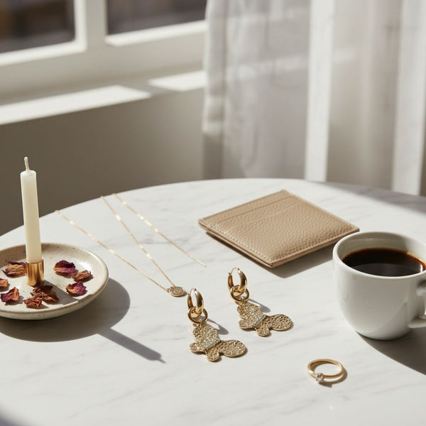 Women's Hoop Earrings. Both Edgy and Whimsical Hollow Puffed Gold Metal Hoop Earrings Featuring Ring Link and Hammered Metal Butterfly Drop with Clear Rhinestone Detailing. Latch Closure.