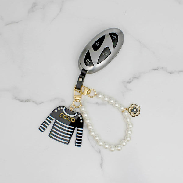 Keychain Black White Stripe COCO Shirt Pearl Clip