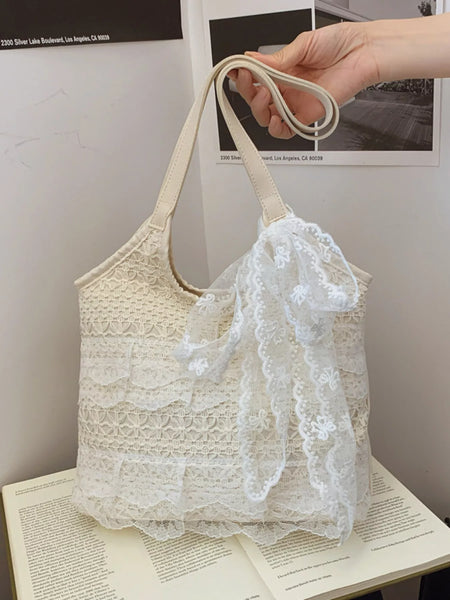 Lace Bowknot Woven Handbag