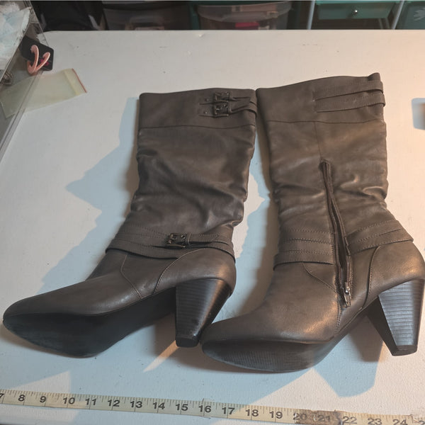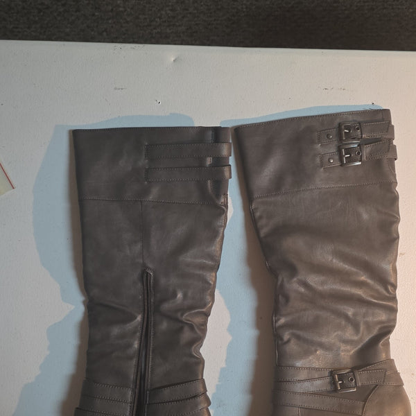 Rampage Edsel Riding Boot Gray Knee High Buckle Zip Synthetic Women’s Size 10M