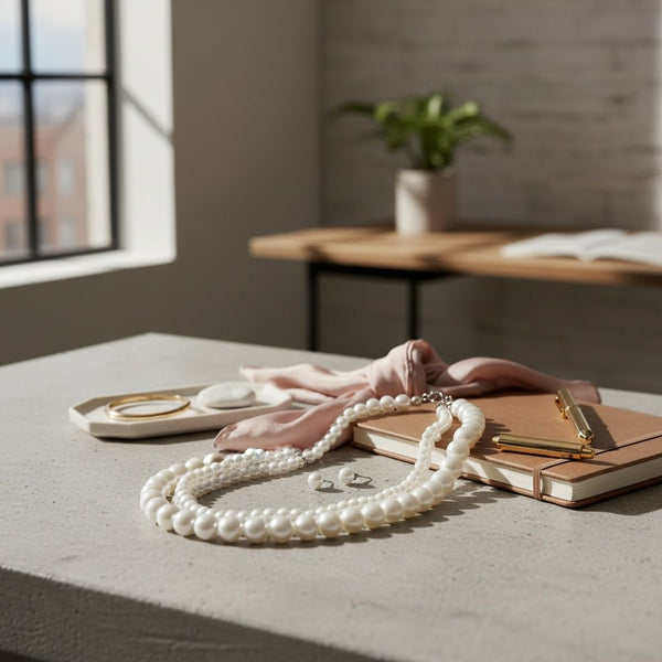 High-Volume, Maximum Impact: This sleek White pearl twisted 4-strand choker set is a modern statement. It features Three Strands of Medium White Pearl with One Strand of Oversized Statement White Pearl Interwoven. Finished with a secure metal Lobster Clasp Closure. Necklace Length 16 inches with 3 inch extender. Set includes Ball Pearl Stud Post Backing Earrings.